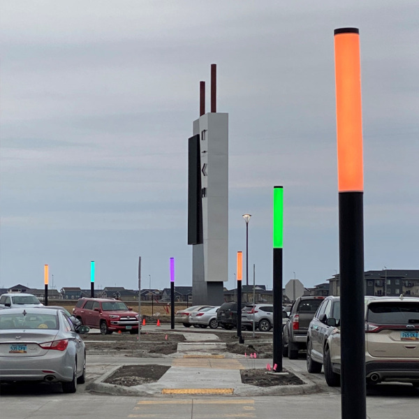 FCA5500-RGBW Round Bollard is rated for outdoor use that incorporates ColourLine Technology adding programmable color control. It's constructed of exterior die-cast aluminum, with an 8-inch nominal diameter bollard post. It has a 360° window and impact resistant, UV stabilized, opal diffuser lens. Standard polyester powder coat finishes include black, bronze, graphite grey, silver and white with custom or RAL colors also available. The color controlled bollard is available in 4 different heights based on the chosen lens height. RGBW and Tunable White in one luminaire means color control of 4.6 billion colors. This product is rated IP65 rated for wet location use. See other RGBW Products from SSL.