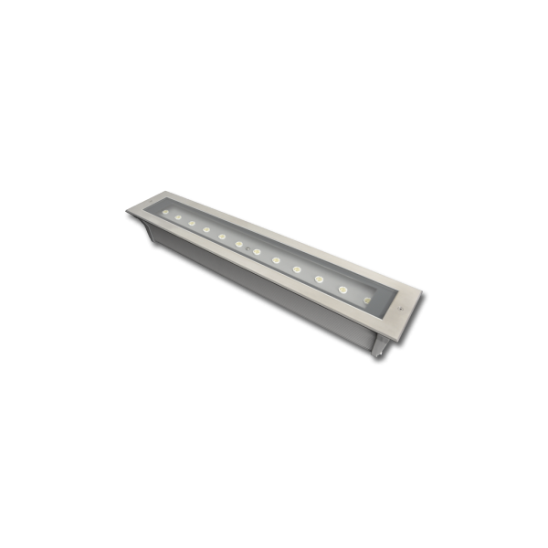 Inground Luminaire is ETL listed for wet locations. Housing is Marine grade, corrosion resistant, heavy walled, high pressure aluminum construction with 316 machined brushed stainless steel trim (aluminum well housing included). Lens is impact resistant, clear, tempered glass. Reflector is precision formed semi-specular aluminum for maximum reflectance with fluorescent lamp. Integral power supply standard. Consult factory for dimming and any single color options.