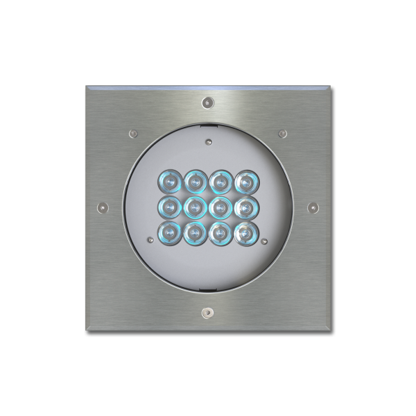 FCD803S-RGBW is an 8-inch square inground recessed luminaire with a stainless steel faceplate. This IP67 rated luminaire is perfect for exterior use and inground applications. With its versatile RGBW and Tunable White color temperature options, along with a wide range of beam spreads, this luminaire offers customizable lighting solutions. The durable construction, including a marine-grade, corrosion-resistant aluminum housing and a clear tempered lens, ensures long-lasting performance. With its high lumen output and excellent lumen maintenance, this luminaire provides reliable and efficient lighting. The FCD803S-RGBW is compatible with various control systems, including DMX 512 and RDM, allowing for seamless integration into any lighting design. Backed by a 5-year limited warranty, this luminaire is a reliable and high-quality choice for any outdoor lighting project.
