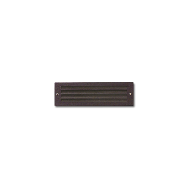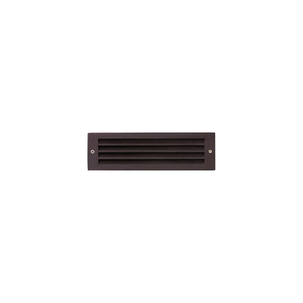 10" horizontal, louvered masonry step light is U.L. listed and IP65 rated for interior and exterior wet locations. Housing and faceplates are marine grade, corrosion resistant, heavy walled, high pressure die cast aluminum construction with (2) 7/8" KO. Lens is 1/8" thick, tempered clear, heat resistant glass with precision formed semi-specular reflector for maximum reflectance. Standard polyester powder coat finishes include black, bronze, silver and white with custom or RAL colors also available.