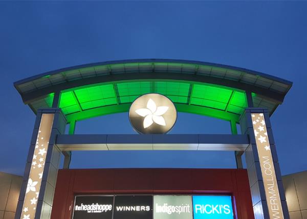 To update aesthetics, improve visibility, as well as energy efficiency, Mayflower Mall renovations included FC Lighting’s 9” High Powered Flood Lights. These versatile FCF1109 RGBW compact luminaires are made of marine grade, corrosion resistant, die-cast aluminum to provide maximum protection against contaminants and the environment.