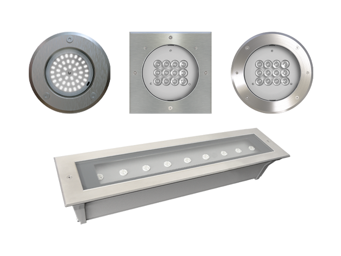 The Inground product line from FC Lighting is designed for enhanced illumination effects and superior longevity. These luminaires are ideal for commercial uplighting projects such as highlighting trees, landscaping or statues, as well as accenting architectural elements, steps and pathways. Most of the face plates are finished in high quality, machined stainless steel. Some models offer die cast aluminum faces with a durable polyester powder coated finish.