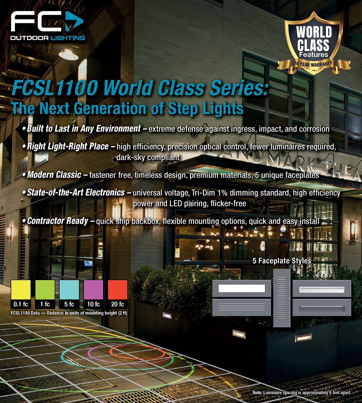 At FC Lighting, we’re striving to become your first choice for efficient, reliable, and inspired illumination products. Give us a call today at 800.900.1730, or contact your local sales representative to learn more about the World Class Series Step Light product line. We are dedicated to delivering premium, meticulously crafted lighting solutions for our customers!